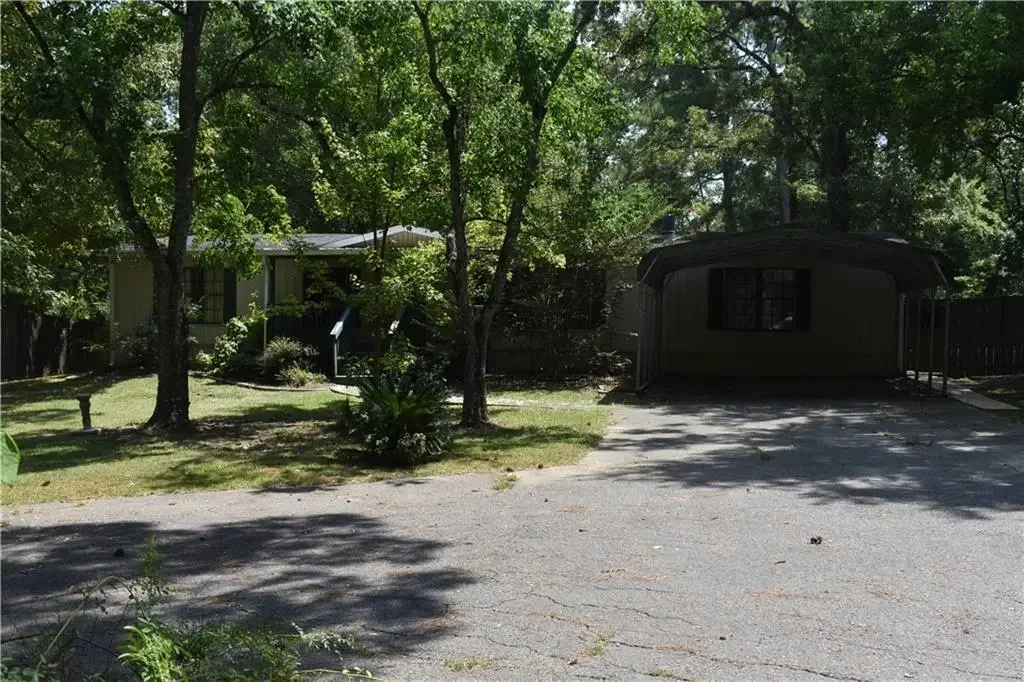 Doublewide with huge open living room/kitchen/dining room and split bedroom plan. Kitchen has five burner and double oven stainless range, microwave and dishwasher. Primary bedroom has on suite bathroom with separate tub and shower. Two bedrooms and full bath with tub/shower on other side of home. All bedrooms have walk in closets. Pantry in utility room plus bonus room for storage, office or craft room. Front porch and huge back porch. Large storage building in back yard. Two car carport. Circular driveway. Nice trees on this lot ap 3.4 miles from I-49. This would make a great starter home or investment property. Court approval must be obtained prior to closing.