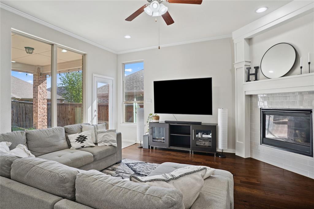 This meticulously maintained 1.5-story home in the resort-style community of Inspiration is sure to WOW you! Perfectly positioned on a quiet cul-de-sac and within walking distance to George W. Bush Elementary and the Hope Harbor pool complex, this home offers unbeatable convenience and lifestyle. Inside, you’ll find engineered wood flooring throughout the main living areas and an open-concept layout that seamlessly connects the Living, Dining, and Kitchen spaces—ideal for everyday living and entertaining. The Kitchen features granite countertops, a gas cooktop, stainless steel appliances, and TONS of cabinetry for ample storage and functionality. The Living Room is anchored by a cozy fireplace and finished with crown molding, creating a warm, inviting atmosphere. The spacious Primary Suite includes a bay window, a dual-sink vanity with granite counters, and a large walk-in closet. The main level offers three Bedrooms PLUS a dedicated Office with a closet, easily adaptable as a 5th Bedroom! Upstairs, enjoy a HUGE Game Room—large enough for a pool table—and a pre-wired Media Room with closet, perfect for movie nights or entertaining guests. Step outside to relax on the covered patio and enjoy the grassy backyard. Additional highlights include a custom mudrack, side door in garage for easy backyard access, laundry room pre-plumbed for a sink, decked attic storage, and fresh landscaping with new mulch and side yard paver walkways. Located just minutes from Collin Park Marina, Inspiration offers resort-style living along the shores of Lake Lavon. Community amenities include pickleball courts, sand volleyball, disc golf, dog parks, playgrounds, a hammock park, stocked ponds, a kangaroo jumper, mini golf, life-size chess, fire pits, zip line, and direct access to the 25-mile Trinity Trail. Frequent HOA events and resident clubs bring the community together year-round. This home truly has it all—don’t miss your chance to make it yours!