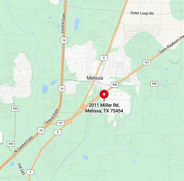 2 Acres with Future Commercial Potential ONE Block from Hwy 121! This unique offering includes two combined parcels totaling approximately 2 acres, currently zoned residential but designated for future commercial use per the City of Melissa’s Future Land Use Plan. The larger parcel with the main house is located within Melissa city limits, while the smaller parcel with the 30x60 workshop sits in unincorporated Collin County—potentially offering more flexible usage options due to fewer municipal restrictions (buyer to verify). The workshop includes a kitchenette, bathroom, and bedroom, making it ideal for storage, hobbies, or light commercial activity. The main house, built in 1965, is not currently livable and will require repairs. With approximately 417 feet of frontage on Miller Road, this high-visibility location is just minutes from the booming commercial corridor along Hwy 121. City water is available, and utilities are believed to include a water line easement (buyer to verify). 5 minutes to the new H-E-B, Walmart Supercenter, and Buc-ee’s—placing you in the heart of Melissa’s explosive growth zone. Opportunity abounds.