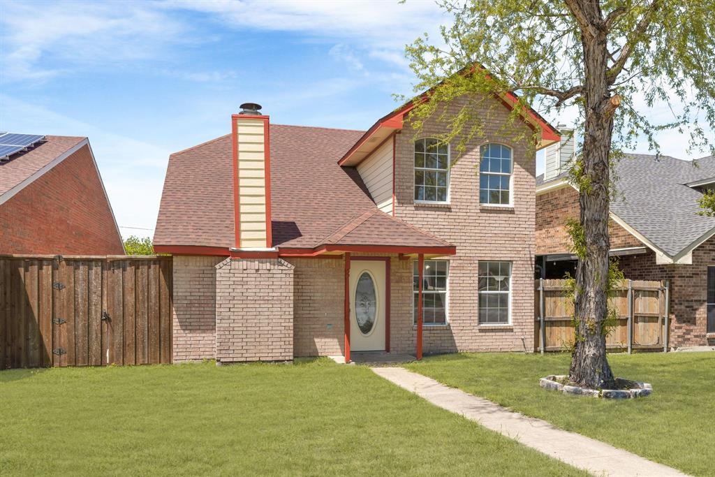 Charming, 2-story brick home located in Meadows of Wylie, offering all new LVP flooring on second floor installed September 2025, a brand new roof installed June 2025, a brand new garage door installed June 2025, a stunning 17-foot vaulted ceiling, gorgeous paneled windows and all-new interior paint, plus updates throughout. In addition to the large front yard and impressive 40-foot tree, the property offers two spacious back yard areas with a 9-ft, board-on-board privacy fence, which could easily be altered to create one extended back yard. Light and bright living room features a cozy stone fire place with gas logs and beautiful white mantle with intricate detailing. The eat-in kitchen features freshly painted bright white cabinets embellished with crown molding and brushed nickel hardware, and a breakfast bar for bar seating. Host dinner parties in the dining area, making a statement with its gorgeous bay windows offering window seating and peaceful back yard views. The spacious primary bedroom is designed with durable luxury vinyl plank flooring with a wood-grain look, paneled windows, and a recently updated en suite bathroom. Bedrooms 2, 3, and 4, all located on the second floor, offer LVP flooring with a wood-grain look, plus a walk-in closet and a ceiling fan. The recently updated, second floor full bathroom is beaming with light from the skylight above, and offers a spa-like design. A portion of the garage has been converted into an air conditioned bonus room that could serve as an office, art studio, music room, etc. Bonus room could easily be converted back into a 2-car garage if desired. The spacious back yard offers an oversized workshop, she-shed, or storage unit, designed with white siding, windows, and a shingled roof. The rear-facing, 2-car garage includes an extended driveway for additional parking, with back alley access. Meadows of Wylie is an established neighborhood located in Wylie ISD.