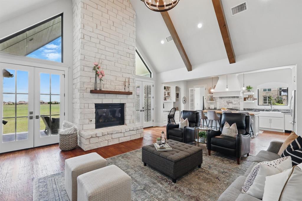 This exceptional home is positioned on a premium corner lot overlooking Hole 6 in the highly desirable Bridges at Preston Crossing community, just steps from the Bridges Golf Club. Offering 4 spacious bedrooms, 3 full baths, and 1 half bath, the floor plan provides both comfort and functionality. The oversized 2.5-car garage offers plenty of space for vehicles and storage alike. Inside, the open-concept layout boasts a large living area with a striking floor-to-ceiling stone fireplace and wood-beamed ceiling. The kitchen is a true centerpiece, featuring a butcher block island, gas range with pot filler, apron-front sink, built-in desk, and seamless access to the butler’s pantry and formal dining room—ideal for entertaining. A private office provides the perfect setting for remote work. The primary suite is a luxurious retreat, offering a spa-like bath with dual quartz vanities, freestanding tub, walk-in shower, and an oversized walk-in closet. A private first-floor guest suite includes its own en-suite bath and walk-in closet, perfect for visitors. Upstairs, two additional bedrooms with walk-in closets share a full bath. Step outside to the covered patio, accessed through dual French doors, where a floor-to-ceiling brick fireplace creates a cozy year-round gathering space. Thoughtful details such as custom built-ins, cased windows, designer trim, and true hardwood floors elevate the home’s character and quality. The Bridges community continues to grow, with exciting updates including a brand-new Gunter ISD elementary school opening in the neighborhood this August, plus a new park and playground coming soon. In addition, residents enjoy access to a clubhouse, pool, restaurant, tennis courts, fitness center, and more—delivering the perfect blend of luxury, lifestyle, and location. Lender Credit: Enjoy a 1% lender credit that can be applied toward closing costs or a rate buy-down.