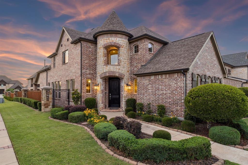 Sophisticated Elegance in the Award-Winning Inspiration Community of Wylie, TX! Experience the epitome of luxury living in this exquisite 5-bedroom, 4-bath masterpiece, perfectly positioned on a prime corner lot in the prestigious, master-planned Inspiration neighborhood. This home effortlessly blends grandeur with functionality, offering refined elegance and modern comforts throughout. Enter through a stately foyer that leads to an expansive open floor plan, ideal for both everyday living and upscale entertaining. The private home office on the main level is perfectly suited for today’s work-from-home lifestyle. The chef’s kitchen is a culinary showstopper—granite countertops, a 5-burner gas cooktop, double ovens, and an oversized island that anchors the space, all overlooking a spacious living room with abundant natural light and counter space. Retreat to the serene primary suite on the first floor, which features a spa-like bath complete with a garden tub, separate shower, dual vanities, and an impressive walk-in closet that connects directly to the laundry room for ultimate convenience. An additional downstairs bedroom adds flexibility for guests or multigenerational living. Upstairs, you’ll find three generous bedrooms—including a Jack-and-Jill setup—along with a spacious game room and a dedicated media room equipped with surround sound, making this home perfect for both family time and entertaining. The three-car garage offers ample storage, and the outdoor living space is truly a retreat—complete with a large covered patio and elegant wood grain stamped concrete. It’s an ideal backdrop for weekend barbecues or tranquil evenings under the Texas sky. Recent updates including new carpet, fresh paint in 2022, and a roof replacement in 2017 offer peace of mind. Beyond the home, enjoy all that Inspiration has to offer—multiple resort-style pools, playgrounds, specialty parks, and proximity to boating and water activities at Lake Lavon.