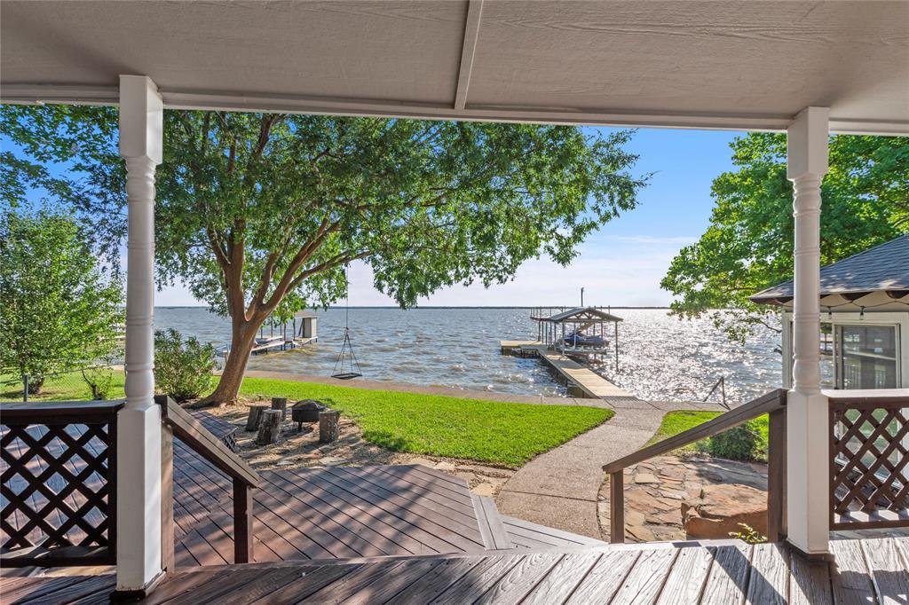 Charming lakefront home offers stunning open water views, an open-concept layout, and a peaceful setting surrounded by mature trees. Step inside and immediately take in the wide open water views that bring the outdoors in! Featuring 3 bedrooms, one with built in cabinets and desk area making is a nice flex space with options. This home captures wonderful lake views and sunsets not only from spacious covered back deck but also inside from windows in the main living area, kitchen, dining room, and primary suite. The shaded backyard is perfect for relaxing or entertaining, with plenty of space for setting up cornhole or other yard activities. A separate detached screened casita offers endless possibilities—use it as a lake side party room, home gym, bunkhouse, game room, or man cave. Complete new boat dock built in 2024. Seller previously had 23 ft pontoon boat in boat slip but recently decked the slip for nice outdoor covered sitting area. Seller still has lift system and new motor so could easily be changed back to a full boat slip with minor decking modification. Boat house does currently have a slip for 2 personal watercraft. Enjoy breathtaking sunsets and the beauty of nature with frequent wildlife sightings right from the spacious backyard . See photos for photo of eagle resting on back yard tree branch. Recently painted exterior, stained house, boathouse decking, new HVAC evaporative coil (August 2025) & new HVAC heat pump (July 2021). Lakeside living at its best—comfortable, scenic, and ready for your next chapter. Furnishings included and short term rental allowed with registration with Gun Barrel City.
