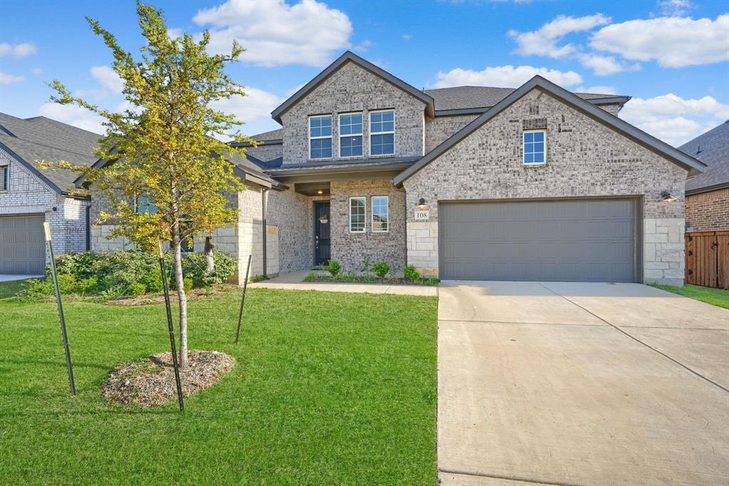Welcome to 108 Laverna Ln, Hickory Creek, TX — a luxurious north-facing, thoughtfully built on a spacious 60x120 lot. Spanning 3,371 sq. ft., this beautifully designed home offers the ideal blend of elegance, comfort, and modern functionality. As you enter, you're greeted by soaring ceilings, nine-foot interior doors, and an abundance of natural light pouring through oversized windows. With two bedrooms, 2.5 bathrooms, and a dedicated office on the main floor, this layout is perfect for families, remote professionals, and multigenerational living. The heart of the home is its luxury kitchen — complete with high-end quartz countertops, modern cabinetry, and an expansive layout ideal for entertainment. The space opens through upgraded sliding glass doors to a serene extended covered patio, perfect for enjoying quiet evenings or hosting gatherings in the backyard with no rear neighbors and direct access to the scenic trail. The primary suite features an extended bedroom layout and a spa-style luxury shower with a sleek European design. Upstairs, you'll find a fully pre-wired media room with 7.1 surround sound capability, along with a spacious gaming room ready to adapt to your lifestyle. With a 3-car garage, smart home features, designer stair railings, enhanced lighting and wiring, and a peaceful greenbelt view, this home truly checks every box.
