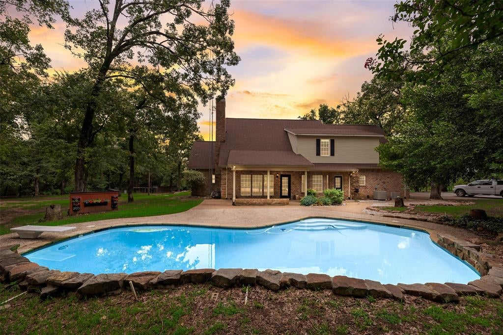 Secluded and serene, this traditional home with an in-ground pool on 5 wooded acres is the tranquil home you've been looking for. This property is completely fenced with an automatic gate at entry for security. It offers 5 bedrooms and 3.5 baths for a large family. 5th bedroom could also be considered a game-room as well as it is very large and roomy. Primary bedroom is downstairs along with living room, formal dining, kitchen, utility room, and a half bath. All other rooms are upstairs. Backyard area with pool is perfect for entertaining large parties.