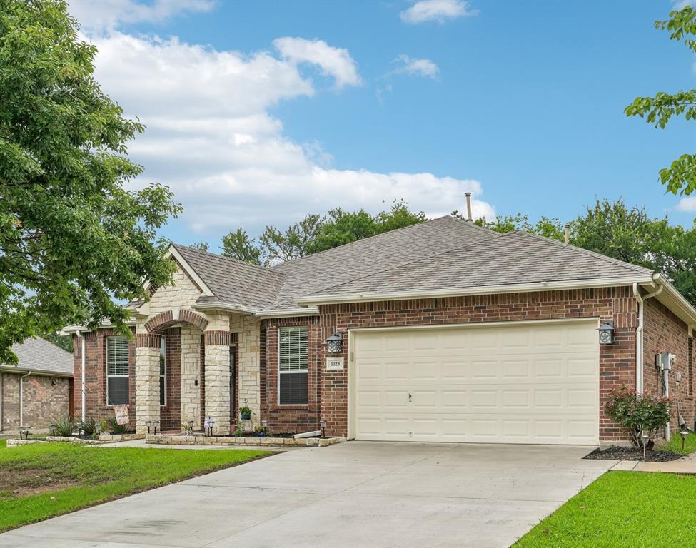 Discover this spacious Hard-to-Find SINGLE STORY gem offering 4 bedrooms and 3 full baths! The heart of the home is the oversized kitchen, perfectly positioned between the living and dining areas and a cozy family room with a warm corner fireplace. Featuring modern stainless steel appliances—including a double-oven range—ample cabinetry, and space for a breakfast table or large island, this kitchen is truly made for gatherings of any size. Stylish hardwood and tile flooring flow throughout the main living areas, combining warmth and durability with low-maintenance appeal. The expansive primary suite is a peaceful retreat with a generous ensuite bath and a designer touch—rustic sliding barn doors. A front-facing office with a sunny bay window and closet offers flexibility as a guest room. Step outside to a large yard and enjoy the comfort of an 18-foot covered patio with a custom Starburst gable. An 8-foot board-on-board fence ensures maximum privacy, making it perfect for outdoor relaxation or entertaining. Located in Bozman Farm Estates, this home comes with access to walking trails, open green space surrounding a pond, and a sparkling community pool. Enjoy proximity to excellent schools, shopping, dining, and highways. This is a must-see home that checks all the boxes—schedule your private showing today!