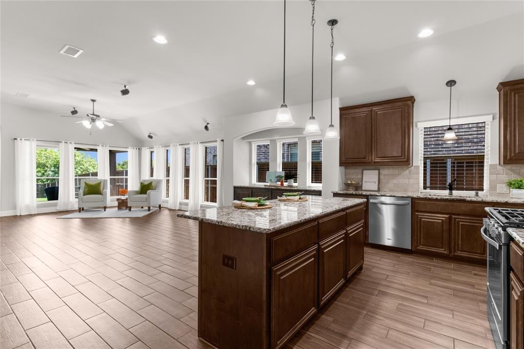 Live the Inspiration Lifestyle, inspired by fitness & fun in this beautiful Bloomfield built home facing Harmony Park. This award winning 638 acre master planned community borders Lake Lavon & is in the historic town of St. Paul within Wylie. You'll love this popular plan with 3 bedrooms on the main level plus a game room, 4th bedroom & bath up. Enjoy the covered patio & the deep private lot with no homes behind, just a quiet road leading to the Lake Lavon boat launch and Anchor Bay Marina. Upgraded granite kitchen with stainless appliances and quality cabinetry. Dining features a butler's bank of cabinets for a perfect coffee or dry bar. Quiet study off the entry with double French doors. Superb primary suite with sitting area. Wood look tile through all main areas for easy care and wear. Highly rated Wylie ISD schools-Elementary within the neighborhood. Inspiration amenities: 4 resort-style pools including a lazy river & snack bar, 4500sf fitness center, 5000sf clubhouse w catering kitchen, stocked ponds, dog parks, putting green, pickleball court, lakeside hammock park, walking trails & parks. See all this home has to offer in this three-time ‘Community of the Year’ award winning neighborhood. Frontier fiber being installed.