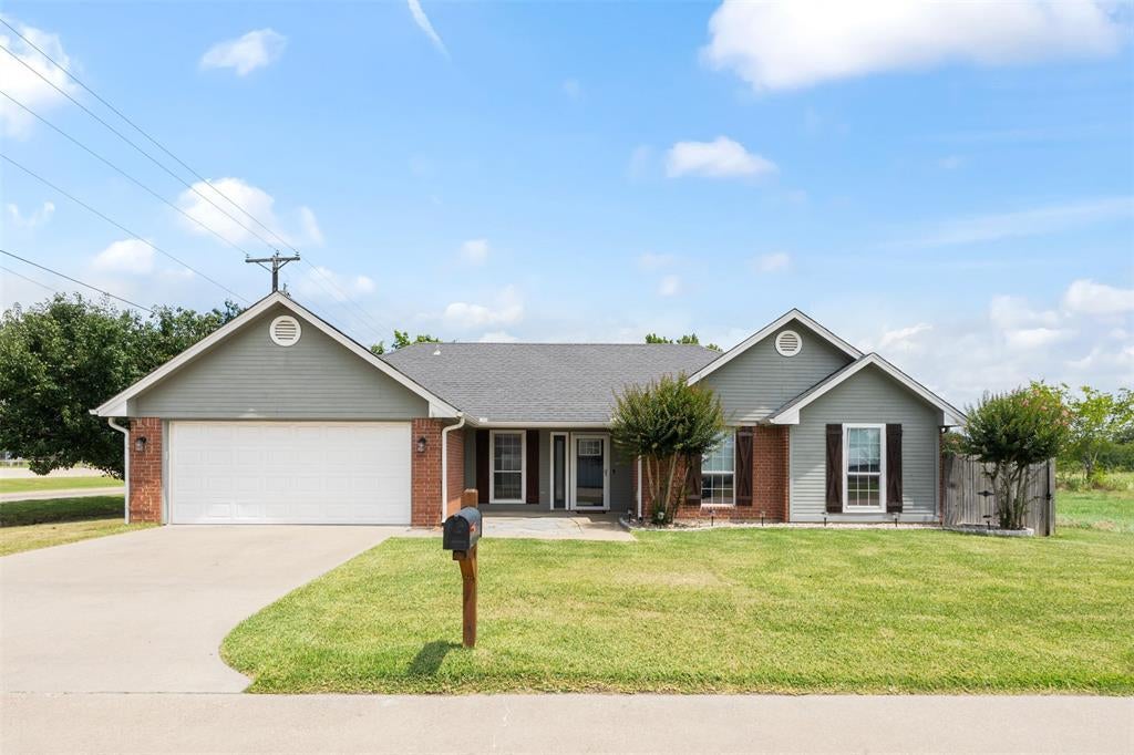This stylishly updated 3-bedroom, 2-bathroom home that blends modern comfort with classic charm. From the moment you arrive, the curb appeal impresses with a well-maintained yard featuring lush Saint Augustine grass and a welcoming entry with covered front porch! Step inside to discover an inviting open-concept layout highlighted by rich wood vinyl flooring that flows seamlessly throughout the main living areas & all bedrooms. The spacious living room boasts soaring vaulted ceilings and a cozy wood-burning fireplace—perfect for gathering with family or entertaining guests. The kitchen features sleek granite countertops, stainless steel appliances, ample cabinetry, and a dining area! The private primary suite is a serene retreat, offering a generously sized bedroom and a luxurious en-suite bathroom with double sinks, a separate walk-in shower, and a relaxing soaking tub. Two additional bedrooms provide flexibility for guests, children, or a home office, while the second full bathroom is tastefully updated for everyday convenience. This home has been meticulously cared for and is truly move-in ready—ideal for buyers looking for comfort & style. The backyard offers a great space for outdoor enjoyment, entertaining. With updated features throughout, a great floor plan, and desirable finishes, this home is a must-see. Walking distance to schools!