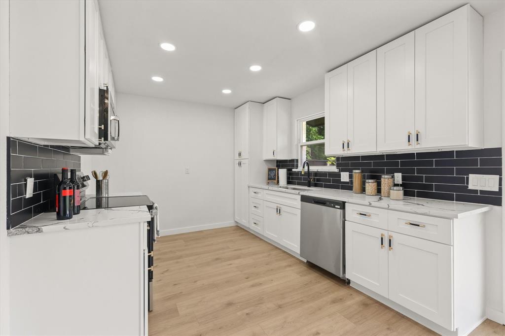 Welcome to this beautifully remodeled home that perfectly combines modern finishes with timeless charm. Featuring 3 bedrooms and 2 bathrooms, this thoughtfully updated property offers a bright, open layout ideal for comfortable living and effortless entertaining. Step into an open-concept living space filled with natural light, complemented by brand-new flooring, recessed lighting, and a neutral color palette. The stunning kitchen boasts new stainless steel appliances, quartz countertops, and custom cabinetry. The bathrooms have been stylishly redesigned with new tile, sleek fixtures, and contemporary vanities. The inviting living area flows seamlessly to the private backyard, perfect for outdoor dining or relaxation. Located in a sought-after neighborhood close to schools, shopping, parks, and commuter routes, this turn-key home is a must-see for anyone seeking quality, style, and comfort.