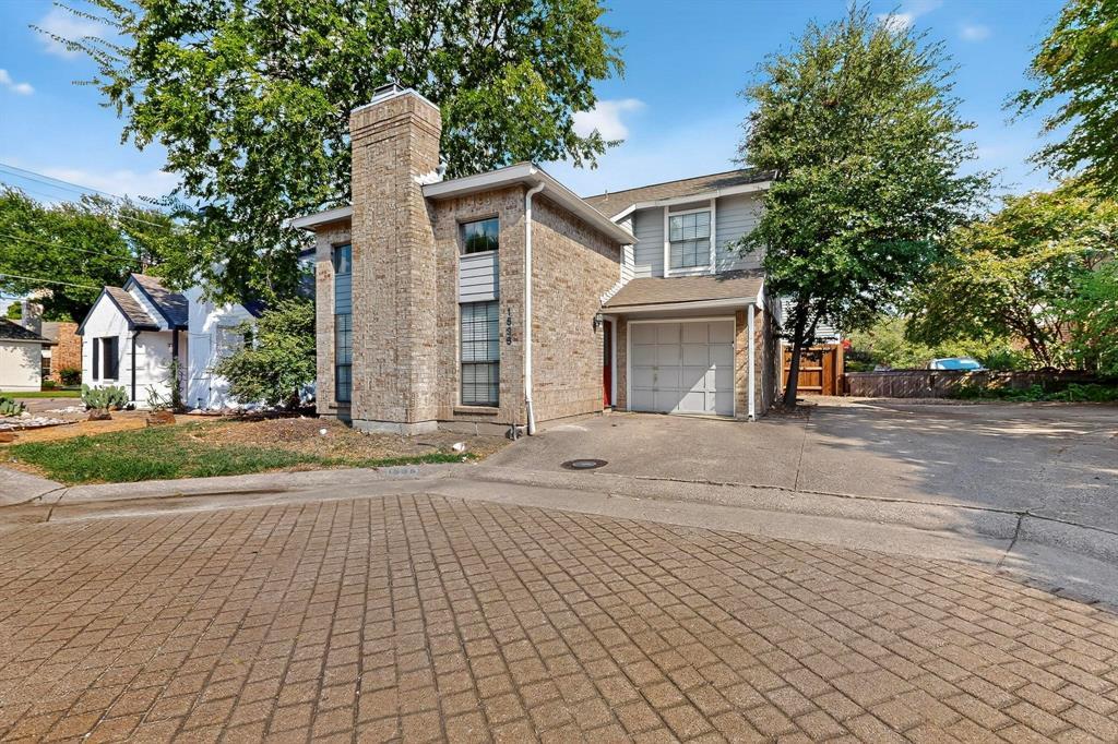 This two-story townhouse places you right by Dallas’ vibrant arts scene. Exall Park is within walking distance, Baylor University Medical Center is a mile away, and the Dallas Arts District is only five blocks from your door, with Uptown and Lower Greenville minutes away by car. Soaring ceilings in the living area frame a dramatic two-story stone fireplace and floor-to-ceiling windows that fill the home with natural light. The open kitchen features light wood cabinetry, sleek black appliances, a stainless refrigerator and granite-look counters, all flowing into the dining and living areas. Two bedrooms offer neutral tones, cozy carpet and generous closets, while one and a half baths include a pedestal sink and tiled flooring. French doors lead to a private, fenced patio perfect for container gardens or outdoor seating. Built in 1983 and offering 1,050 square feet of space with an attached garage