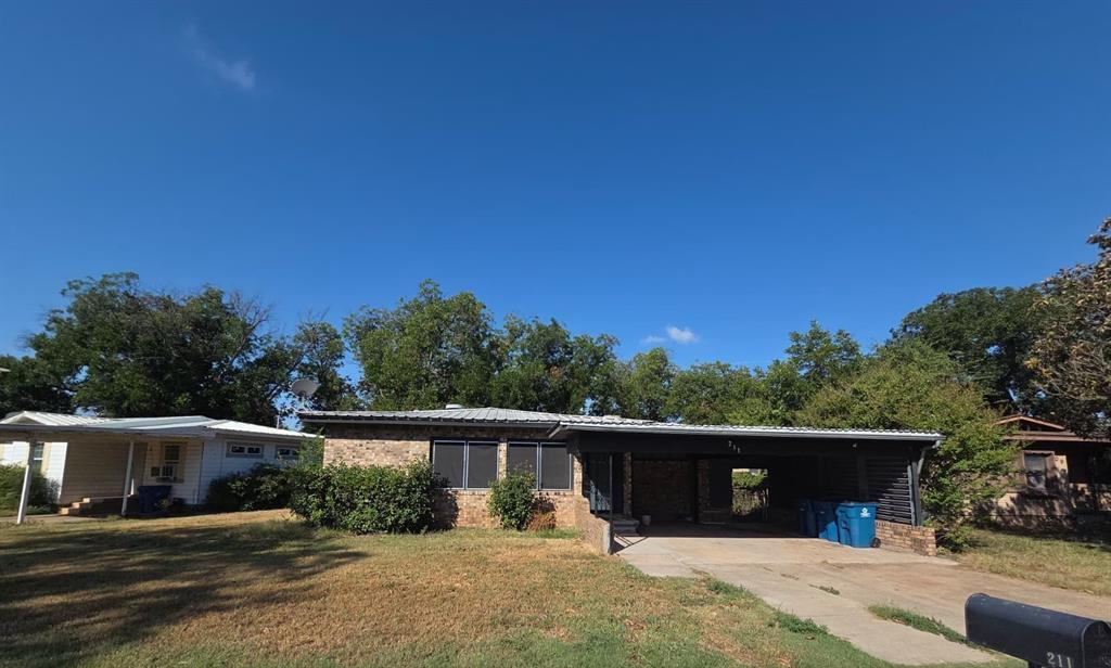 A charming single-story brick home located at 211 Paloma St, Winters, TX. This spacious residence features 4 bedrooms, 2 full bathrooms, and approximately 1,787 sq ft of living space on a generous 9,916 sq ft lot. The durable metal roof and covered carport add to the home's appeal. Recent updates include new plumbing and electrical work, enhancing functionality and modern comfort. The property offers a comfortable layout with separate living and dining areas and is situated close to local schools and community amenities.