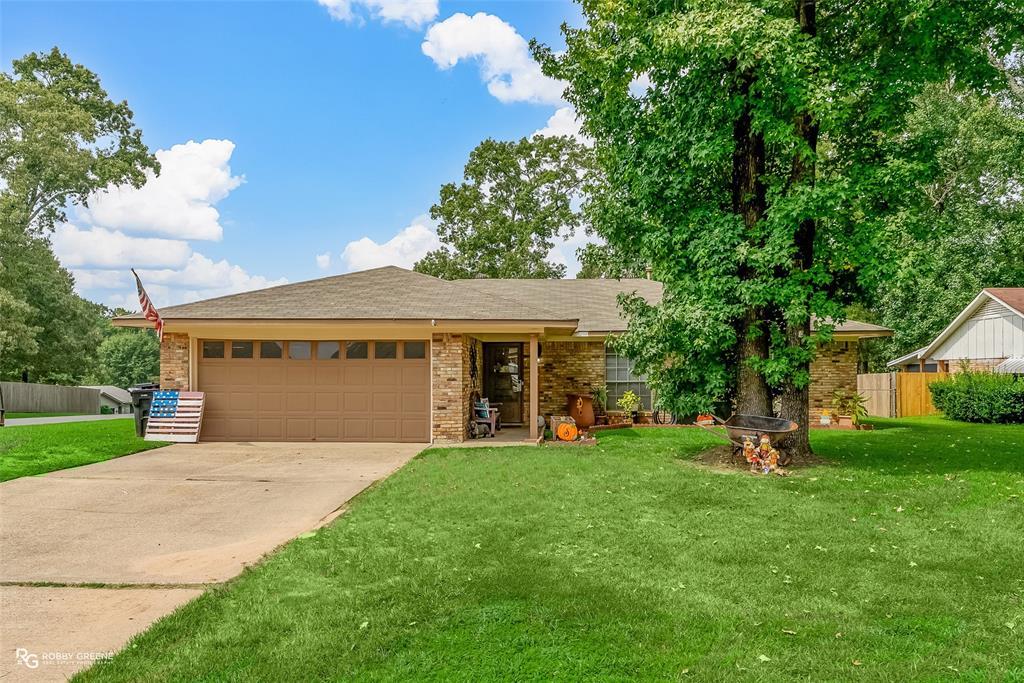 LARGE CORNER LOT! Nestled in the established Dogwood Park, this charming 3 bedroom, 2 bathroom home offers 1,450 square feet of living space. From the moment you arrive, you’ll appreciate the welcoming curb appeal complete with a brick exterior, mature shade trees, and a broad front lawn. The spacious living area is anchored by a brick fireplace that adds both charm and functionality, creating a cozy focal point for gatherings. Handsome wood-look flooring, neutral tones, and recessed lighting lend the perfect blend of modern updates and timeless appeal. The kitchen has been thoughtfully renovated, granite countertops, white cabinetry, stainless appliances, and a subway tile backsplash. A large peninsula with breakfast bar seating connects the kitchen to the living and dining spaces, making entertaining effortless. The dining nook, framed by oversized windows, provides a lovely view of the backyard and fills the room with natural light. The primary suite serves as a restful retreat, complete with ample closet space and an ensuite bath featuring an updated vanity and walk-in shower. Two additional bedrooms and a second full bath provide flexibility. Out back, you’ll find a generous fenced yard with endless possibilities, ideal for pets, play, or simply enjoying the outdoors. The covered patio creates a shaded spot for relaxing afternoons, weekend cookouts, or evenings spent unwinding! Perfectly positioned in the heart of Haughton, this home offers the quiet charm of a well-kept neighborhood while remaining close to schools, shopping, and quick interstate access. Call today to schedule your private showing. New garage door is being installed soon & roof is 2019!