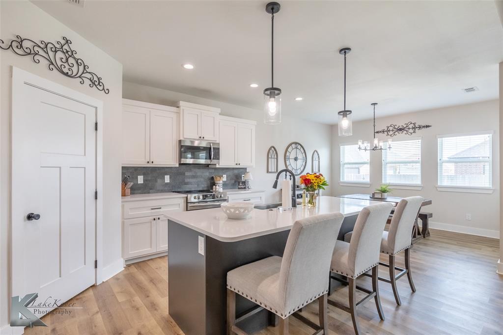 Welcome to this beautifully designed Cornerstone Custom Home in Elm Creek at Wylie, offering 2,474 square feet per appraisal and one of the larger homes in the neighborhood. Situated on a quiet cul-de-sac, this residence features four bedrooms, two and a half baths, and an open floor plan perfect for both daily living and entertaining. The heart of the home centers around the kitchen, complete with a large island offering seating, modern finishes, and a seamless flow into the dining area and spacious living room. The living space is anchored by an elegant stone fireplace with an electric insert, creating both warmth and charm. Just off the living room is a private office, while the primary suite includes a thoughtfully designed closet that connects directly to the laundry room for everyday convenience. And let’s not forget the 119-gallon commercial-size water heater so no one is left with a cold shower! The oversized three-car side-entry garage and extended driveway provide plenty of storage and parking, including a 30-amp RV plug. Outdoors, you’ll enjoy a lower-maintenance yard with WiFi-controlled sprinklers in the front, back, and flower beds, plus a 15x30 concrete slab ready for your outdoor kitchen, pergola, or play space. The neighborhood itself enhances the lifestyle, offering access to a community pool with splash pad, dog park, and scenic nature trails and sidewalks that connect throughout, ideal for an evening outing around the neighborhood. With minimal yard maintenance required and located within the Wylie West School District, this home blends space, efficiency, and community amenities, making it a true standout.