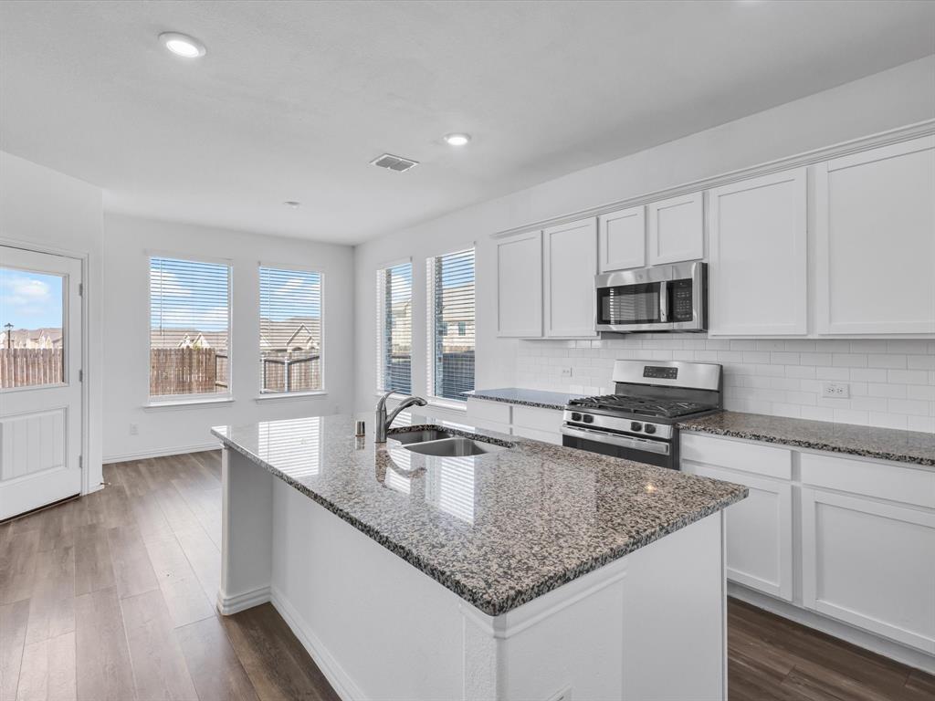 Built in 2021, this two-story home in Arcadia Farms offers 4 bedrooms plus office, game room and multi-generational suite with private kitchen and bath. Open-concept living features engineered wood floors, granite island kitchen with gas range, stainless appliances and subway-tile backsplash. Main-level office ideal for remote work. Upstairs includes versatile game room and spacious secondary bedrooms. Primary suite offers dual sinks, oversized shower and walk-in closet. Covered patio overlooks fenced backyard. Arcadia Farms residents enjoy community pool, playgrounds, trails and green spaces with easy access to shopping, dining and Princeton ISD schools. Minutes to Lavon Lake and major commuter routes. Arcadia Farms Community Pool (0.2 mi)