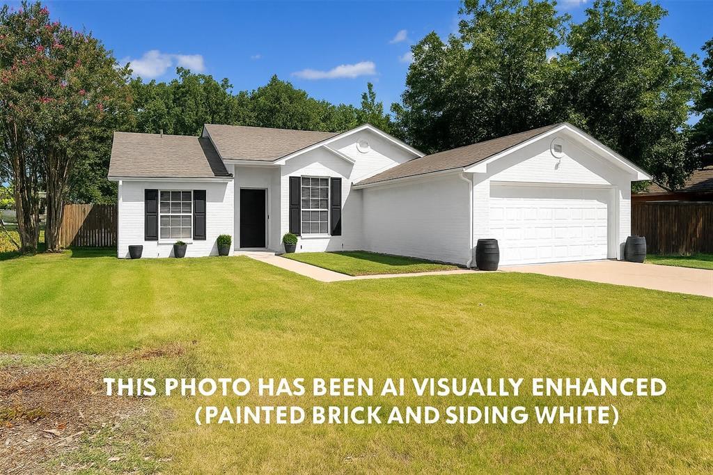 Special financing available with the Seller's preferred lender to include lower than market interest rate! Charming 1 Story on a Spacious Corner Cul De Sac Lot – No HOA! This well kept home sits on a large corner lot at the end of a cul de sac in an established friendly tree lined neighborhood! You will love the close proximity to schools, Denton Square, and the easy access to Loop 288 and Hwy 380. The open concept layout features a chef's kitchen with granite countertops, a large island, stone backsplash, stainless steel appliances including a new dishwasher and vent hood. The kitchen opens seamlessly to the living room, highlighted by a cozy wood burning fireplace perfect for gatherings. The private primary suite offers vaulted ceilings, dual sinks, a garden tub, and a separate shower, while the secondary bedrooms provide flexibility for family, guests, or a home office. Recent updates include a new AC system (2020), fresh exterior paint, new washer and dryer, new side fence, and brand new front yard grass. Durable wood look tile runs throughout the home, combining easy care with great style. The huge fenced backyard provides plenty of room for entertaining, pets, or play. With no HOA, thoughtful updates, and a prime location, this home is move in ready and a must see!