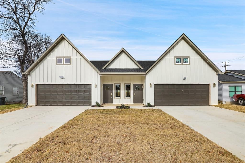 DIAMOND IN THE ROUGH!!! NEW CONSTRUCTION CUSTOM BUILT DUPLEX, RENTAL INCOME OPPORTUNITY, JUST IN TIME TO WELCOME 2026 WORLD CUP SOCCER-FIFA AND MANY MORE MAJOR EVENTS, (1.5 MILES) CONVENIENTLY LOCATED IN THE VIBRANT HEART OF ARLINGTON ENTERTAINMENT DISTRICT with world class venues such as AT&T STADIUM, GLOBE LIFE FIELD, TEXAS LIFE,ETC. This stunning one-story duplex offers spacious 1,546 square feet living space in each unit, 3 bedrooms, 2.5 baths, 2-car garage, this duplex is meticulously designed to show off open concept living room with built-in decorative electric fireplace, beautiful backsplash and quartz countertop in kitchen, pendant lightings above kitchen island. This duplex is perfect for either short or long term rental income!!! ASK ABOUT BUILDER'S WARRANTY